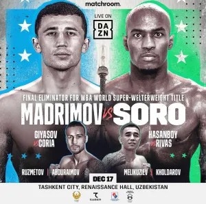 Ces profils-là ne sont jamais les plus faciles à vendre ; on juge alors le travail des promoteurs à la valeur des combats qu’ils parviennent à leur décrocher comme aux conditions les accompagnant. Dans le cas de Michel Soro, les faits sont accablants : inactif depuis 24 mois, un homme de 34 ans dut ainsi aller défier en Ouzbékistan une étoile locale en devenir, Israil Madrimov, déjà auteur de sorties convaincantes aux États-Unis. On savait Soro aussi bien préparé qu’à son habitude après un stage à Bear Lake, largement plus expérimenté que son adversaire du soir, et l’on n’ignorait pas les lacunes affichées par Madrimov tant en défense que dans la gestion de ses réserves d’énergie sur toute la durée d’un combat. Reste que, pour qui connaît un peu le (plus ou moins) noble art, l’affaire avait de franches allures de traquenard quatre étoiles.