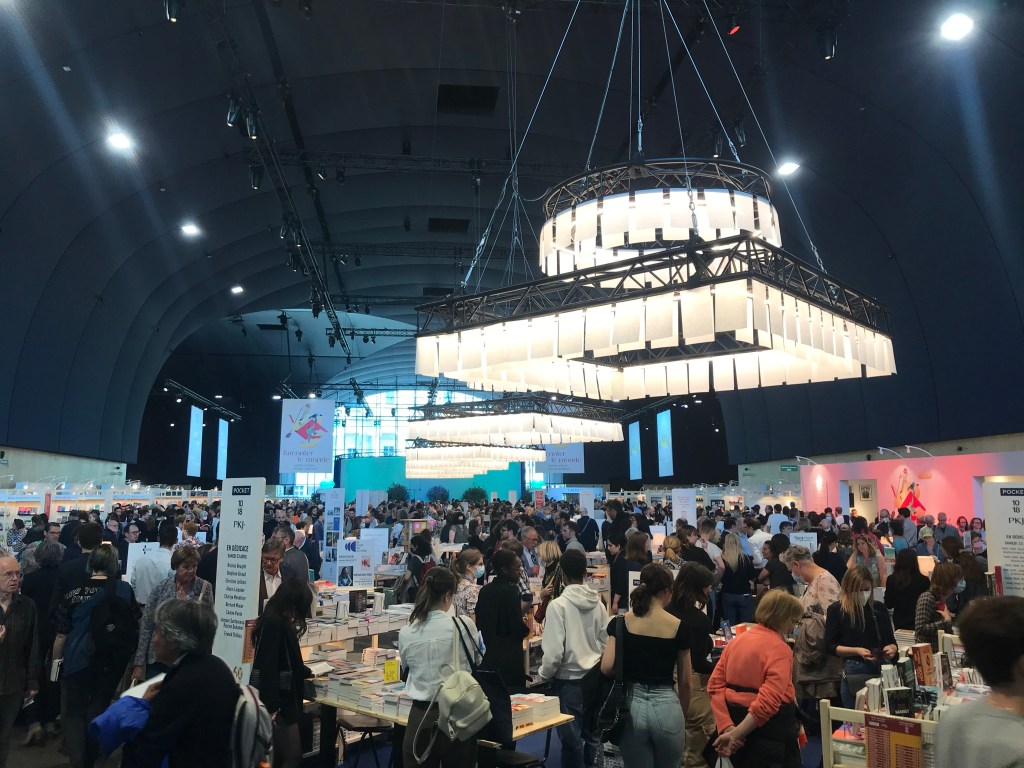 - À force de dire qu’on ne me reprendrait plus à mettre un orteil au Salon du Livre, j’ai fini par passer une tête sans trop l’avoir prévu à ce qui est désormais son successeur, organisé par le Syndicat national de l’édition : le Festival du Livre de Paris, dont l’accès est gratuit. L’emplacement choisi au bout du Champ de Mars évite désormais aux amoureux des belles lettres de se croire au moins distingué Salon de l’Agriculture. Plus arrondie et élégante que les halls parallélépipédiques de la Porte de Versailles, la structure en bois et plastique du Grand Palais Éphémère a pour principal inconvénient qu’au retour des beaux jours et garni d’une foule dense, l’endroit acquiert vite une atmosphère de serre tropicale. Ce vendredi après-midi, les mauvaises langues diraient qu’on pouvait aller respirer plus facilement dans l’espace clairsemé dévolu à l’invitée d’honneur, la littérature indienne. Stands en bois blond et suspensions monumentales donnent une certaine gueule au tableau d’ensemble, sans même évoquer la verrière monumentale donnant sur la Tour Eiffel. Le ravitaillement des professionnels en champagne de marque buvable semble indéniablement apprécié par les intéressés. Toutefois, l’organisation cherche encore ses marques : en témoignent la signalétique approximative, la cohérence hermétique de l’agencement des exposants et une répartition peu lisible de la facturation entre caisse centrale et machines à CB volantes laissant redouter un « festival de la fauche », selon un éditeur présent. S’il est agréable de voir revenir certains poids lourds, et éviter ainsi l’effet « Salon Gallimard – Amazon » des ultimes éditions du Salon du Livre, on peut regretter que le tarif des emplacements ait rebuté nombre d’éditeurs indépendants. Quid des people présents ? J’aurai vu Jean-Luc Mélenchon et Édouard Philippe presque côte-à-côte juste après que l’ex-Premier Ministre eut dédicacé son dernier opus à celui qui aspire à devenir le prochain. Chez les écrivains, les vrais, j’aurai reconnu Nicolas Matthieu, Maria Pourchet, François-Henri Désérable, Anne Berest et Thierry Beccaro. On suivra avec intérêt les ajustements effectués pour la prochaine édition prévue au Grand Palais – non éphémère, celui-ci.