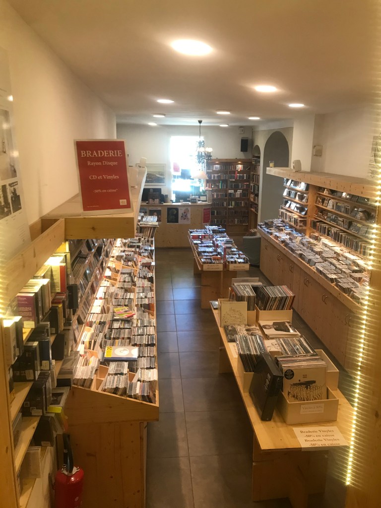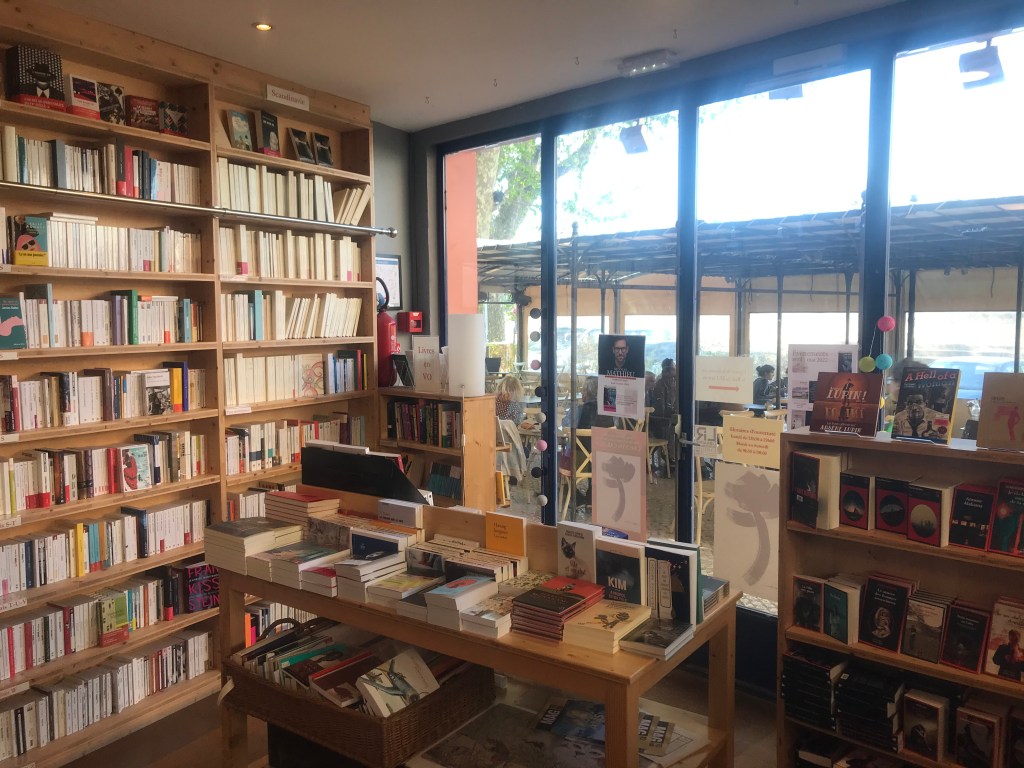 - Difficile d’évoquer les libraires arlésiens sans mentionner le vaisseau amiral de la flotte, la Librairie (-papeterie-disquaire-cinéma-marchand de couleurs) Actes Sud, un lieu plein de coins et recoins où l’on se perdra non sans satisfaction et qui procure une rare opportunité d’utiliser le mot « labyrinthique » sur un blog littéraire en 2022 sans (trop) passer pour un poseur. J’eus la chance d’y être guidé par un allié dans la place, camarade de comptoir virtuel rencontré pour l’occasion. Je retiendrai entre autres le souci louable d’exposer des éditeurs indépendants et méritants (Le Typhon en force) et la présence au sein de l’équipe d’un sémillant représentant du village de Montolieu, où il apparaît urgent d’aller faire un tour.