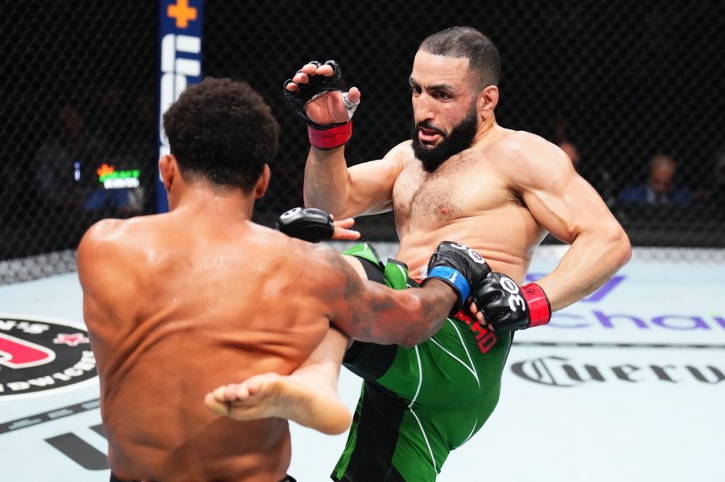 • C’était pas la fête au striking à l’UFC ce week-end. Co maint-event de la soirée, le Gilbert Burns vs Belal Muhammad offrit un spectacle debout qui dut coller des aigreurs rétiniennes aux amateurs du noble art. Vraisemblablement blessé, le premier a arrêté de faire aller son jab après la deuxième reprise et ne parvenait que trop rarement à contrer les offensives téléphonées du second, qui consistaient grosso modo dans des middle-kicks évoquant davantage les coups de queue de Godzilla que la dextérité d’un welter classé 4ème dans les rankings. On ne saurait dire à quel point la suractivité de Burns et la sortie du ramadan de Muhammad ont entamé leur capacité à performer. Reste que la victoire logique mais sans éclats de Muhammad ne devrait pas le rapprocher davantage d’un title-shot contre Leon Edwards. Tant mieux, en un sens : face à la technique chirurgicale du britannique, l’addition du pensionnaire de Roufus Sport se révèlerait autrement plus salée que l’eye poke qui a soldé leur première rencontre en no-contest.