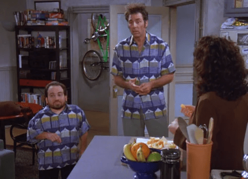 On l’aura compris, Elaine et Kramer, fondés sur le sens de l’observation des scénaristes, font de savoureux partenaires à Jerry, au point de souvent lui voler les répliques marquantes et rires tonitruants. Mais ils sont surpassés en perfection par le grand, l’unique, le prodigieux George Costanza, probable meilleur personnage de l’histoire des sitcoms. Si George doit son patronyme à un camarade de lycée de Jerry Seinfeld, il est directement inspiré de Larry David lui-même, un personnage dont on peut apprécier le caractère particulier dans la série Curb your enthusiasm — ou Larry et son nombril — dans laquelle il interprètera à son tour son propre rôle après Seinfeld. Pour faire simple, le petit, chauve et épais George Costanza est un condensé de névroses, largement héritées d’un couple de parents dysfonctionnels, qu’il a la particularité d’assumer tout à fait auprès de ses proches. Comment ne pas aimer un personnage affirmant dans The Pilot : « Je ne peux pas mourir dans la dignité. Je veux être la seule personne qui ne meure pas dans la dignité. Je vis ma vie entière dans la honte. Pourquoi devrais-je mourir dans la dignité ? »