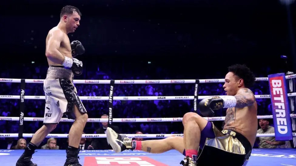 - Nombreux sont ceux qui découvrirent Jack Catterall à l’occasion de l’odieuse purge de 2022 l’opposant au fantôme de Josh Taylor que deux juges trouvèrent le moyen d’attribuer à l’Écossais au mépris de ce qu’ils en virent – et probablement de leur conscience. Autant dire que l’homme du Lancashire ne démarrait pas avec une étiquette de crowd pleaser patenté. Tel Achab guettant le blanc cétacé, l’Anglais sut être patient pour obtenir sa revanche face à la « Tartan Tornado » deux ans après le braquage, et se faire justice à Leeds d’une manière cette fois incontestable. Celui qu’on surnomme « El Gato » boxe souvent sur un ou deux coups, soigne ses esquives et déplacements et se fout pas mal des envies de castagne du public présent – son dernier KO date de 2019. Ce qui lui importe, c’est gagner des rounds, et la qualité de ses sorties récentes faisaient de lui un favori logique face à Regis Prograis, boxé à lui en faire tomber les oreilles par Devin Haney en décembre dernier. Sur le ring mancunien d’une Co-op Arena flambant neuve, on imaginait l’Américain aux bras courts incapable de régler la mire devant une nouvelle cible élusive à souhait. Que « Rougarou » domine un première moitié de combat très tactique et parfois brouillonne en surprit donc plus d’un. Il eut le dessus dans le duel de jabs de gaucher, et c’est justement sur un jab à l’épaule qu’il déséquilibra suffisamment Catterall pour inscrire un knockdown.