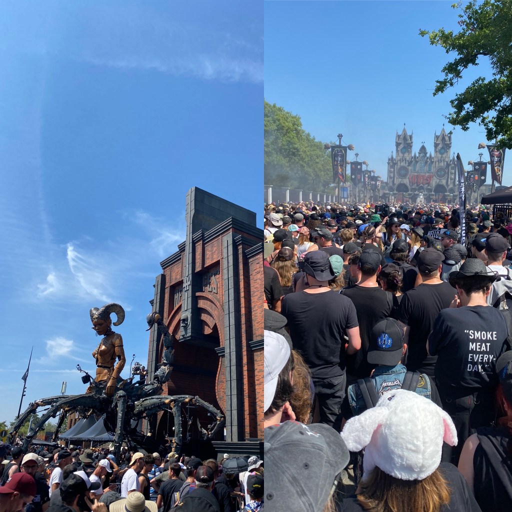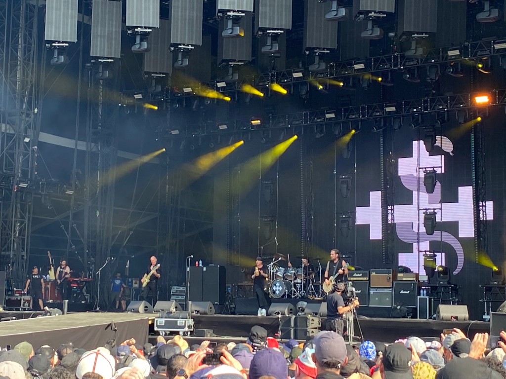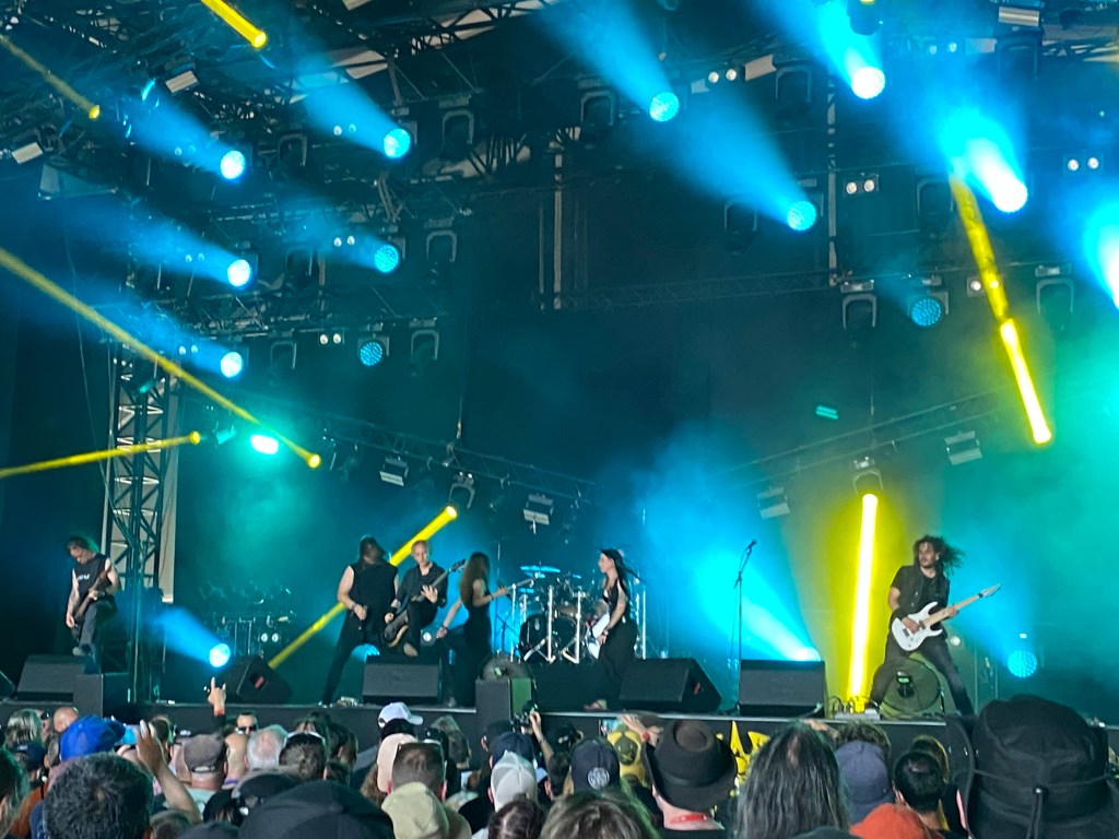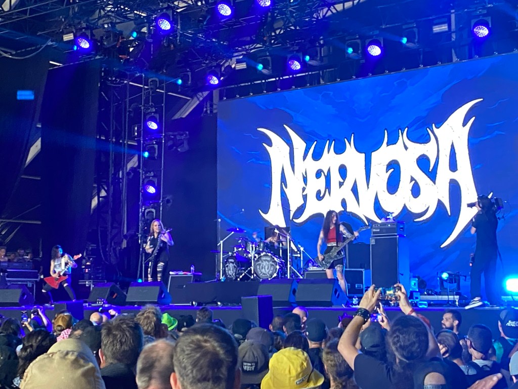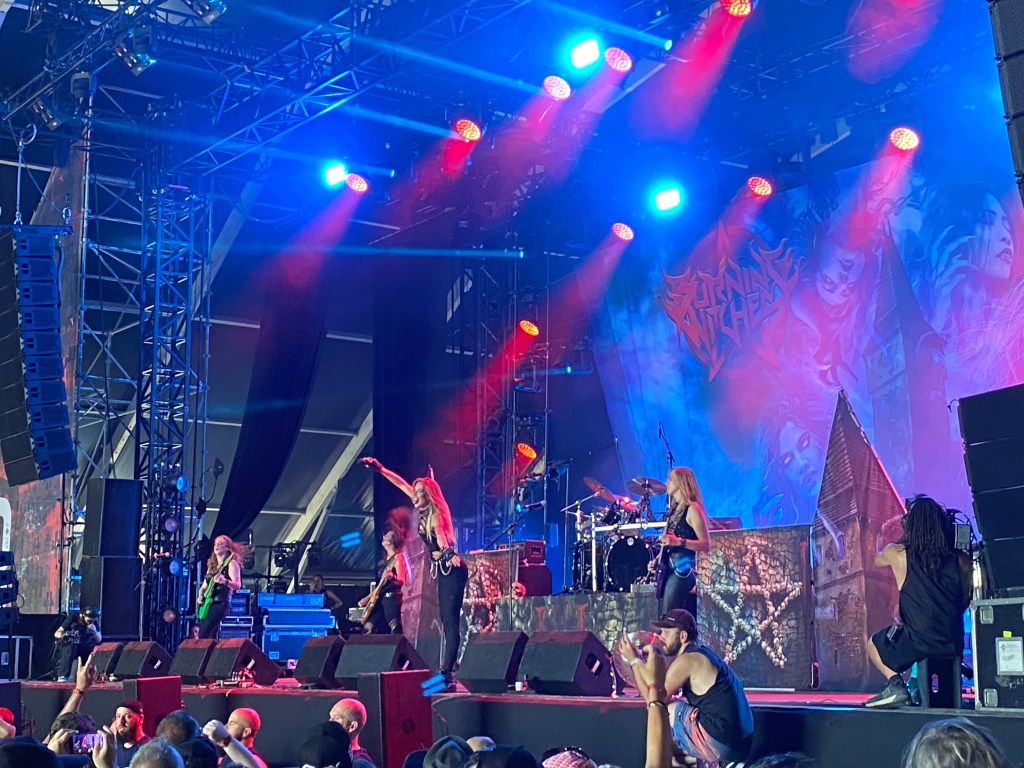 Il est question d’un autre lineup de filles en Mainstage 1, que vous suivez cette fois à distance faute d’être très informés sur leur pedigree. Trois sœurs mexicaines composent The Warning, formation de Monterrey biberonnée au gros rock mainstream, d’ACDC à Metallica en passant par Queen et Pink Floyd. Ce que leurs compositions cèdent en complexité à celles de Burning Witches se voit largement compensé par un sens prononcé de la mélodie catchy et du refrain fédérateur. D’ailleurs le pit semble apprécier, remuant un minimum sa couenne sur ce rythme 4/4 qui marche comme un doudou. Quand quelques samples viennent lier la sauce, on n’est plus si loin de Linkin Park. Ton voisin en tenue de soubrette est conquis ; sans te rouler par terre pour autant, tu salues ici une vraie bonne prestation. Et puis cette bassiste, tout de même. Passons.